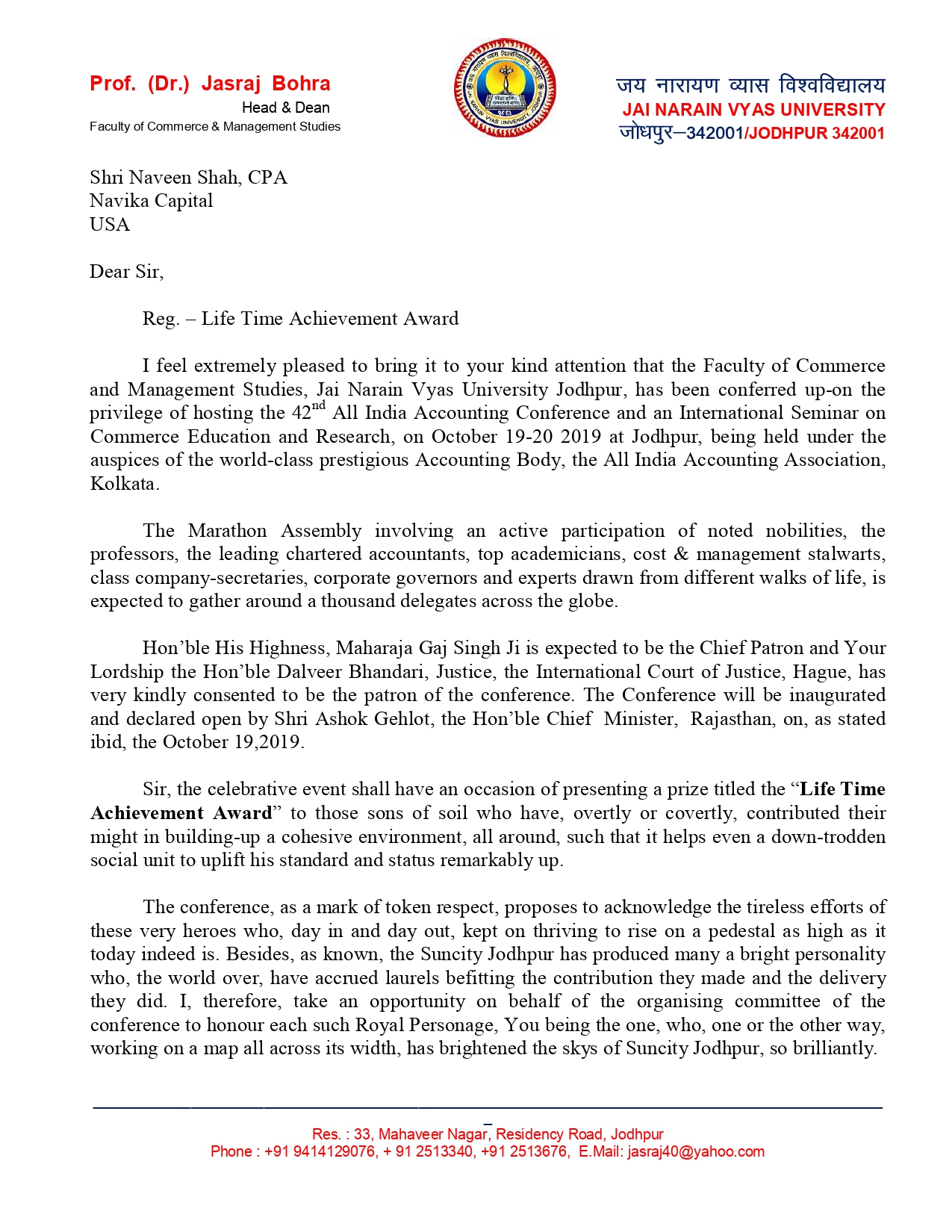 Faculty of Commerce and Management Studies, Jai Narain Vyas University Jodhpur hosting the 42nd All India Accounting Conference ...