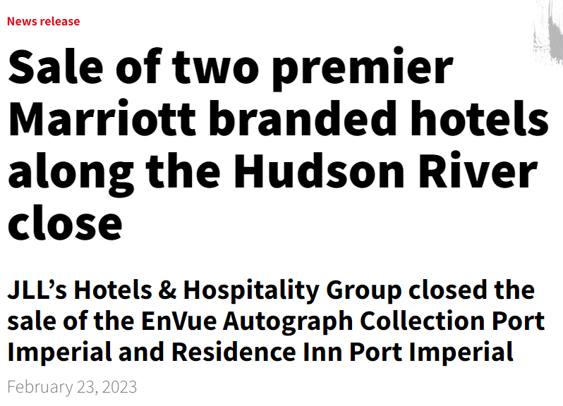 Sale of two premier Marriott branded hotels along the Hudson River close (jll.com)Acquisition of Two Premier Marriott Branded Hotels